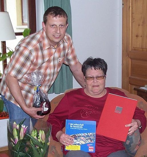 Unser Mitglied Hedwig Tarkhani konnte am vergangenen Montag gleich zwei Jubiläen feiern. Ihren 60. Geburtstag und 25 Jahre SPD Mitgliedschaft. Für 25 Jahre SPD konnte nun der OV Vorsitzende Sie mit einer Ehrenurkunde und Ehrennadel Silber auszeichnet werden.